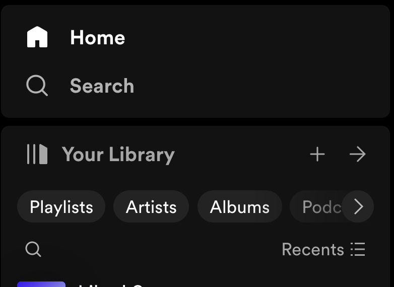 In the top left of the web app, you’ll see the Home button, search spyglass, and a link to your library of music. All in one place that is easy to find and access or use. You can find all the relevant information you need to use the application. This is the first column section.
