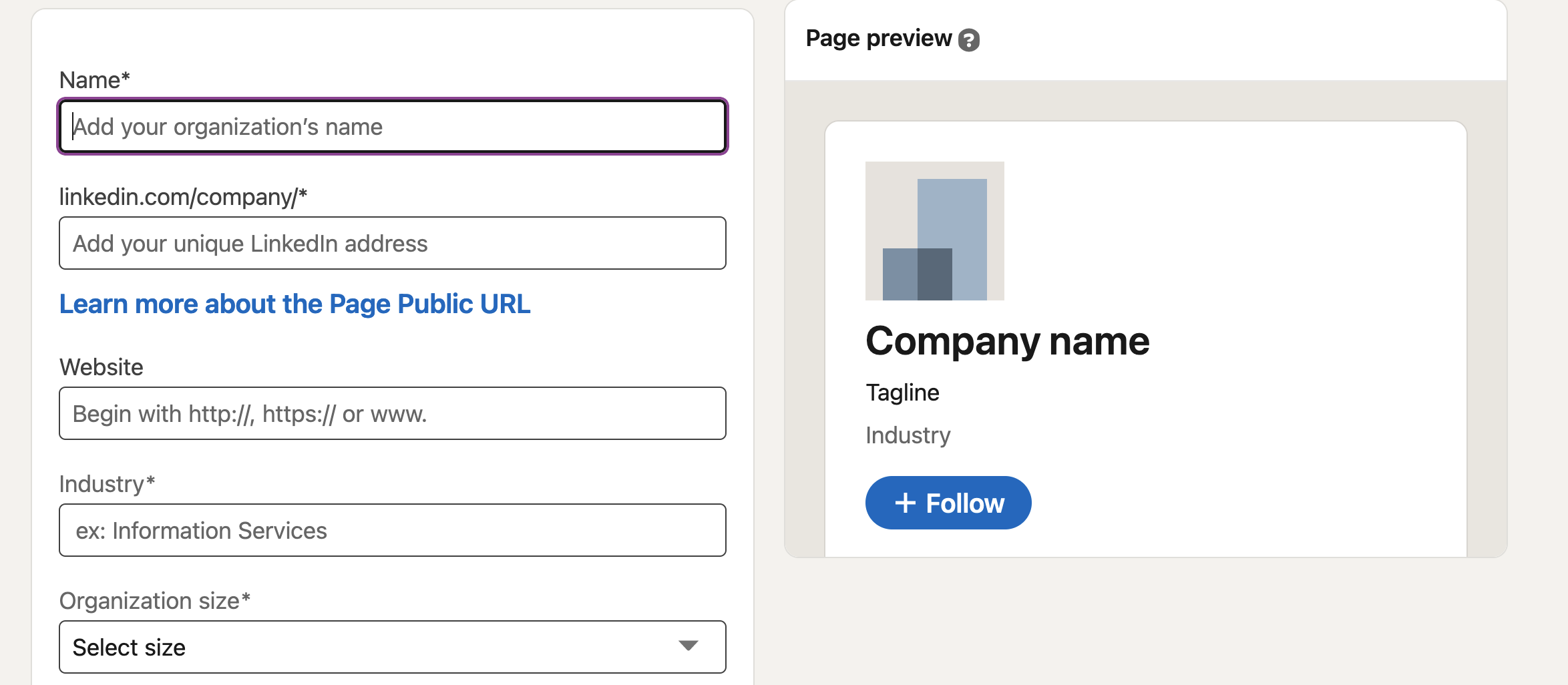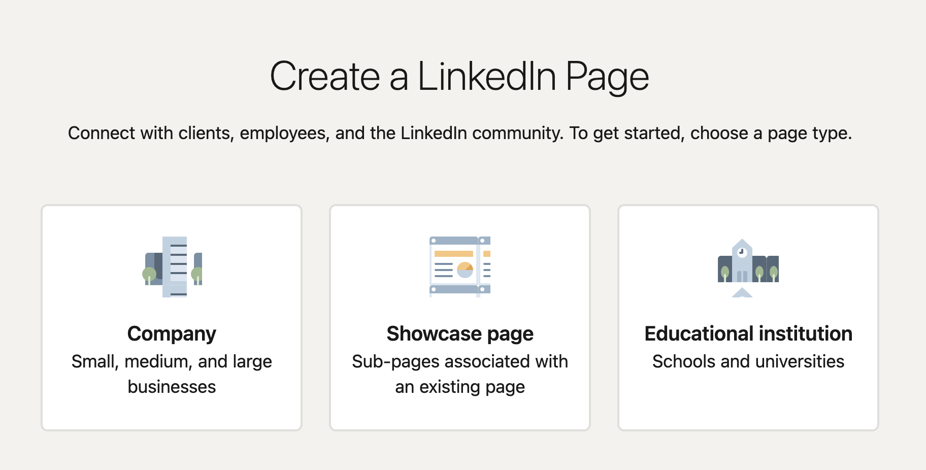 3. Click ‘Company’, and then follow the steps to build your company page.
