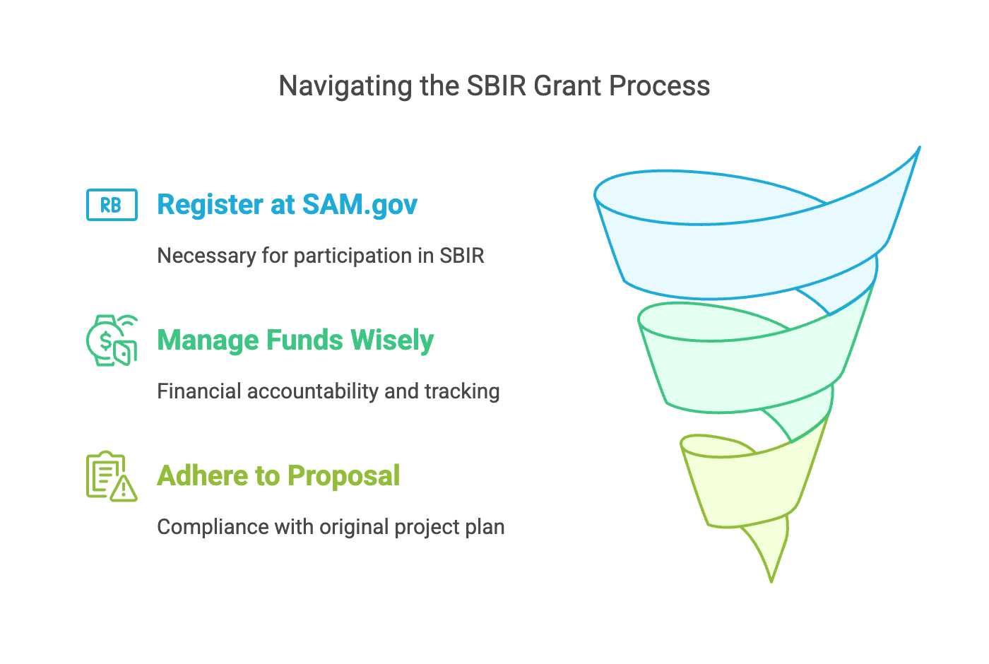 Messing up here might see your funds pulled or losing out on future benefits. Want to know more about getting eligible? Dive into our article on SBIR grant eligibility criteria.